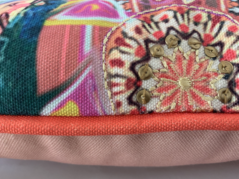 Dit eclectische kussen is de perfecte manier om zowel buiten als binnen een kleurrijke -en eigentijdse sfeer te creëren! Met zijn frisse voorjaarskleuren en unieke etnische personages is het een echte eyecatcher. Het kussen is gemaakt van gerecycled PET, waardoor je niet alleen een stijlvolle, maar ook een duurzame keuze maakt. Wauw! Dit kussen heeft een perfecte maat voor je loungebank! 35 x 70 cm. Geborduurde details en een aantal pailletjes geven net dat beetje meer!
